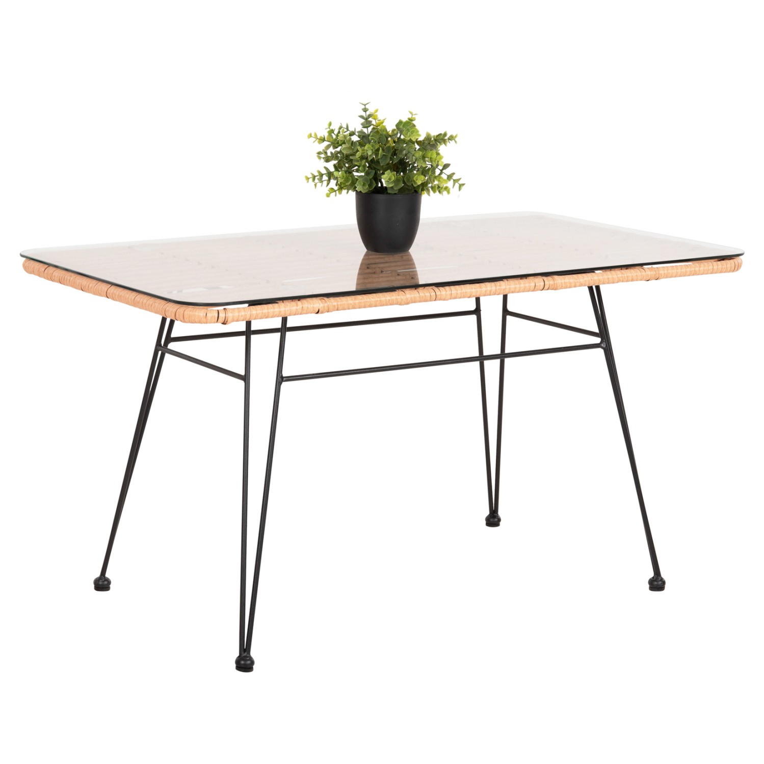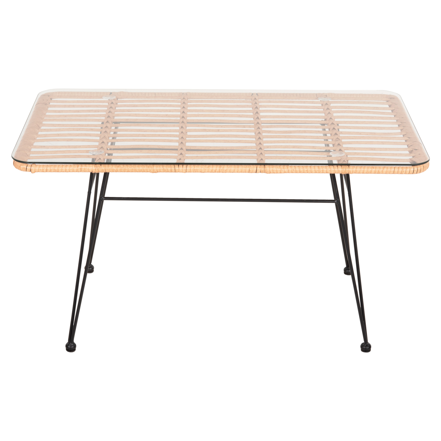 Το ορθογώνιο (με στρογγυλεμένες γωνίες) χαμηλό τραπέζι εξωτερικού χώρου της σειράς επίπλων ALLEGRA έχει ΜΑΥΡΟ μεταλλικό σκελετό με 4 πόδια. Το επάνω μέρος του σκελετού είναι επενδυμένο με συνθετικό Rattan σε ΜΠΕΖ(φυσικό) χρώμα, έτσι ώστε να τοποθετηθεί το γυαλί ασφαλείας της επιφάνειας. Ένα κλασικό, πια, σχέδιο που μπορείτε να το ταιριάξετε με πολλές διαφορετικές καρέκλες ή πολυθρόνες, είτε ίδιας είτε διαφορετικής φιλοσοφίας. Οι διαστάσεις του το κάνουν ιδανικό για μικρότερους χώρους, τόσο επαγγελματικούς, όσο και για το σπίτι.