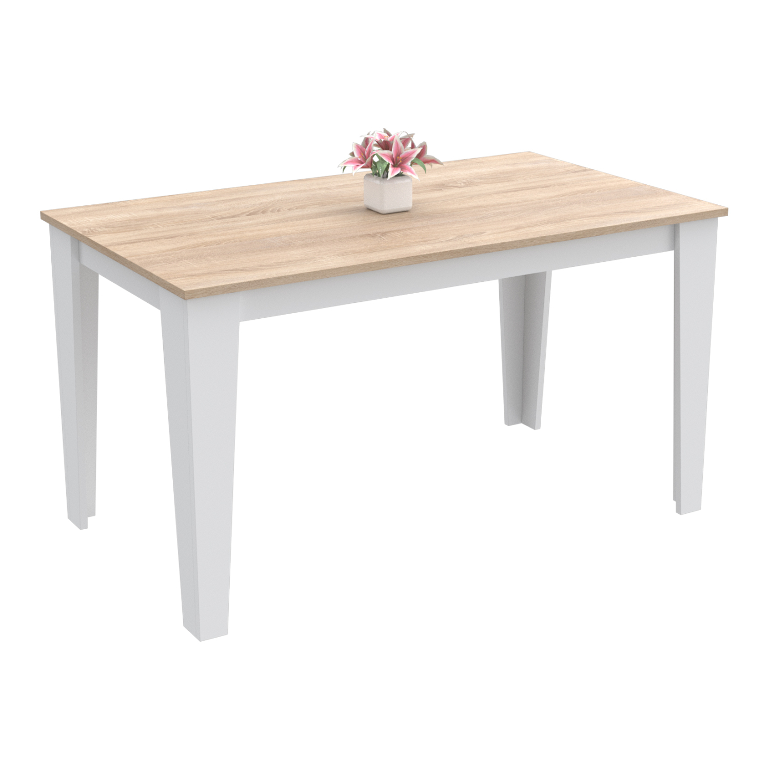 Το BORIS είναι ένα ορθογώνιο τραπέζι από μελαμίνη με επιφάνεια σε χρώμα SONAMA. Τα 4 πόδια είναι επίσης από μελαμίνη σε ΛΕΥΚΟ χρώμα και ιδιαίτερα στιβαρά. Πρόκειται για ένα απλό τραπέζι σε κανονική διάσταση, που μπορεί να εξυπηρετήσει άνετα 4 τουλάχιστον άτομα.