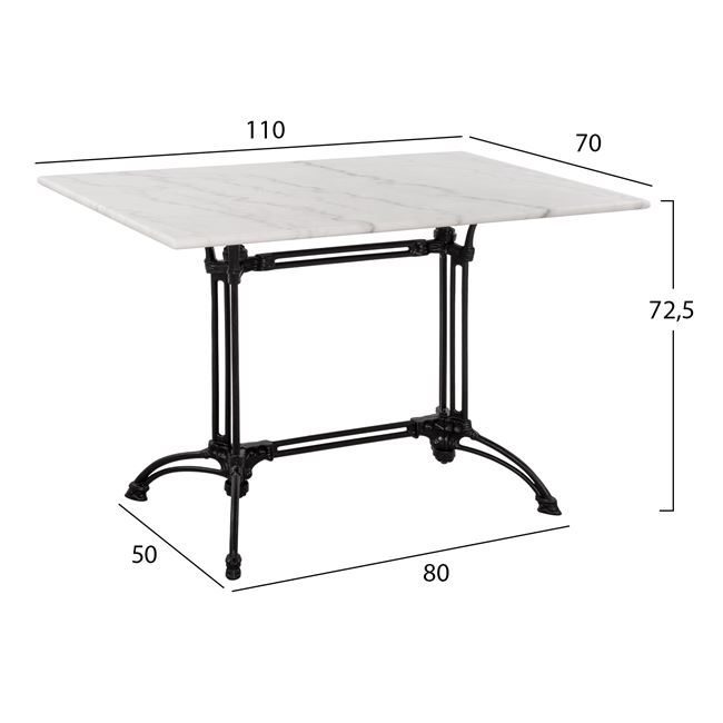 Το τραπέζι HM5612 είναι κατασκευασμένο από μάρμαρο σε λευκή απόχρωση ενώ η βάση του είναι κατασκευασμένη από μαντέμι σε μαύρη απόχρωση.