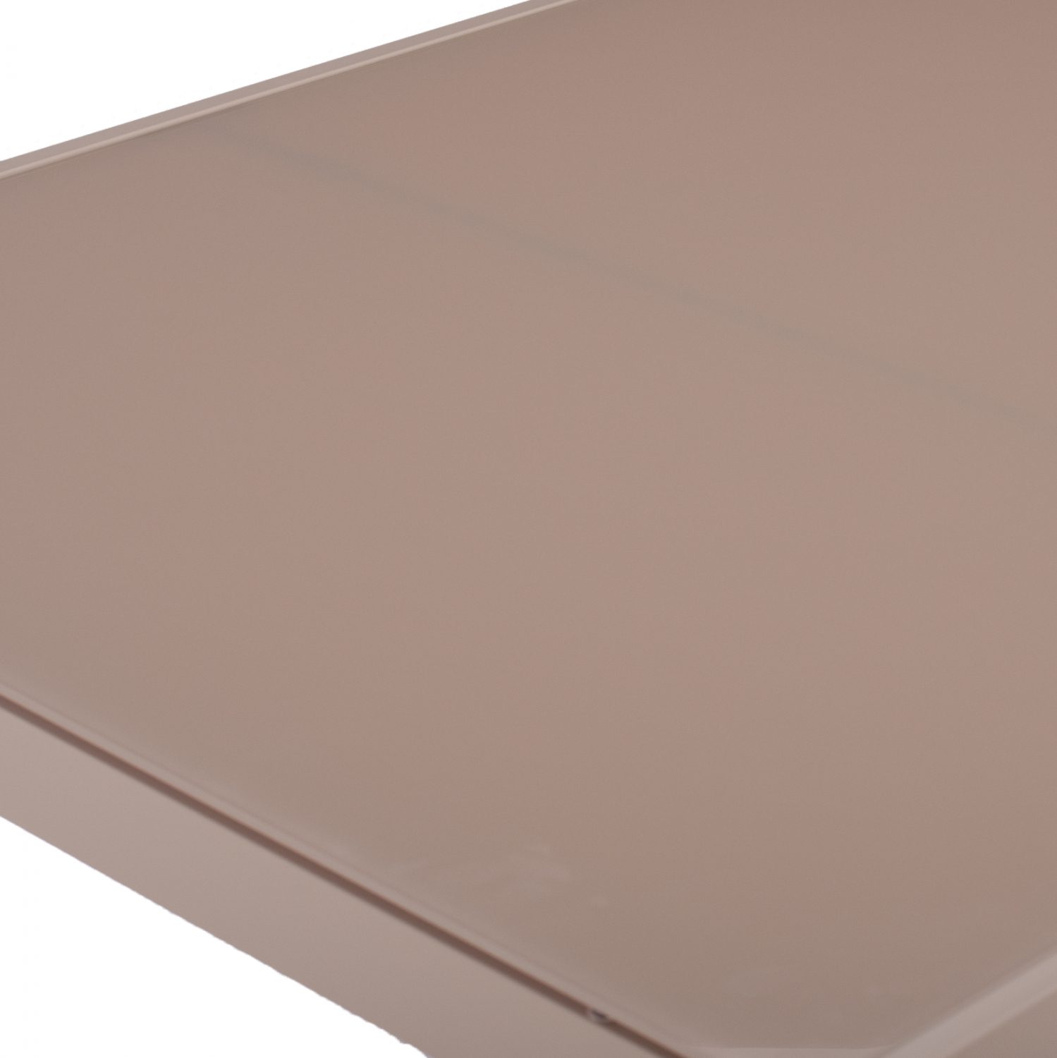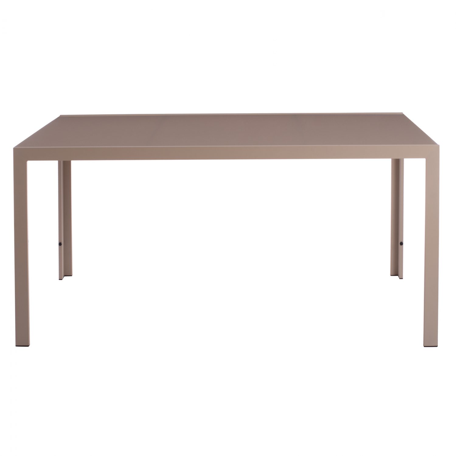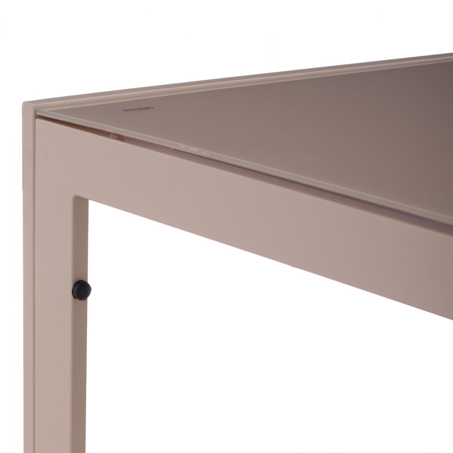 Τραπέζι εξωτερικού χώρου μεταλλικό σε απόχρωση καπουτσίνο με γυαλί στην επιφάνειά του.