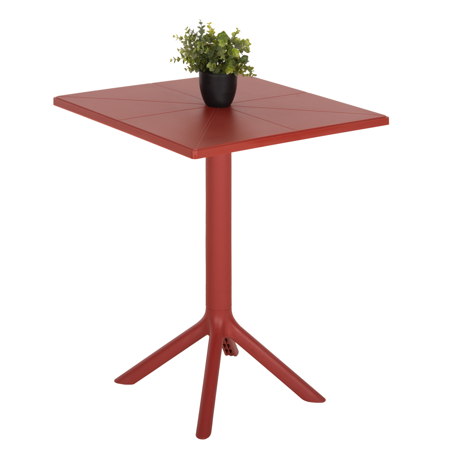Το τραπέζι πολυπροπυλενίου TERRIN σε ΚΟΚΚΙΝΟ χρώμα είναι η ιδανική πρόταση για χρήση σε εξωτερικούς χώρους, είτε επαγγελματικούς (χώροι δεξιώσεων, εταιρείες catering, κλπ.) είτε για το σπίτι. Το τραπέζι είναι τετράγωνο, ενώ η στήριξη γίνεται με μια κολώνα στο κέντρο που καταλήγει σε 4 πόδια («νύχια»).