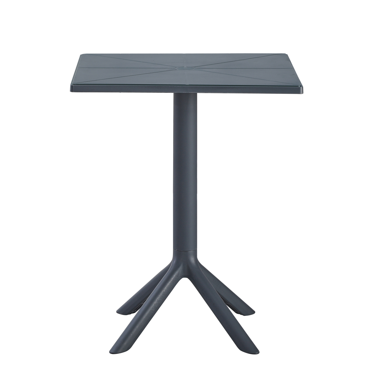 Το τραπέζι πολυπροπυλενίου TERRIN σε ΣΚΟΥΡΟ ΓΚΡΙ χρώμα είναι η ιδανική πρόταση για χρήση σε εξωτερικούς χώρους, είτε επαγγελματικούς (χώροι δεξιώσεων, εταιρείες catering, κλπ.) είτε για το σπίτι. Το τραπέζι είναι τετράγωνο, ενώ η στήριξη γίνεται με μια κολώνα στο κέντρο που καταλήγει σε 4 πόδια («νύχια»).