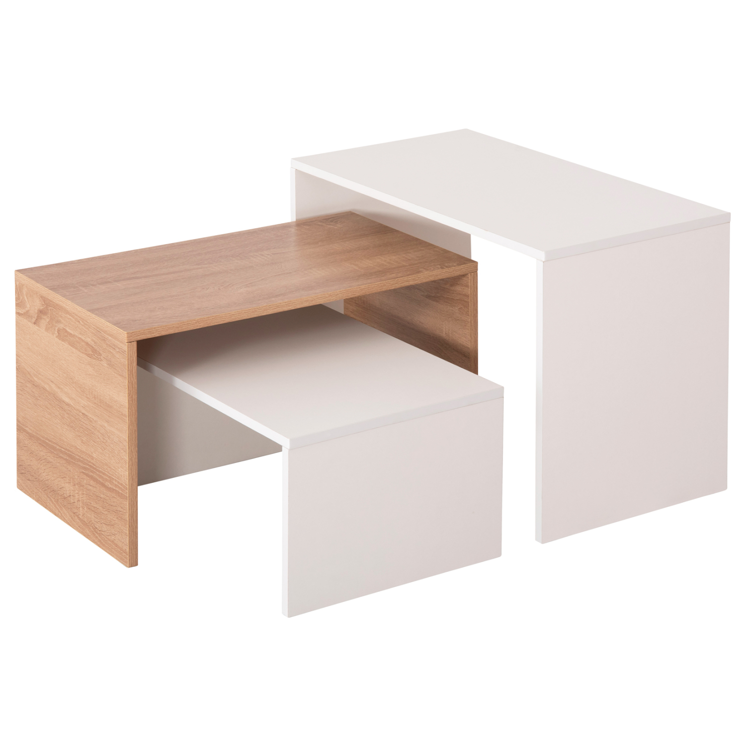 Με τα τραπεζάκια ζιγκόν BENTIL μπορείτε να δημιουργήσετε πρωτότυπες διακοσμητικές συνθέσεις, δίνοντας νέα πνοή στον χώρο σας. Πρόκειται για 3 τραπεζάκια μελαμίνης εκ των οποίων 2 σε χρώμα ΛΕΥΚΟ και ένα σε χρώμα SONOMA. Το εντυπωσιακό στοιχείο αυτού του σετ είναι ότι το στήσιμο κι η τοποθέτηση τους δίνουν την εντύπωση ενός ενιαίου τραπεζιού σαλονιού.