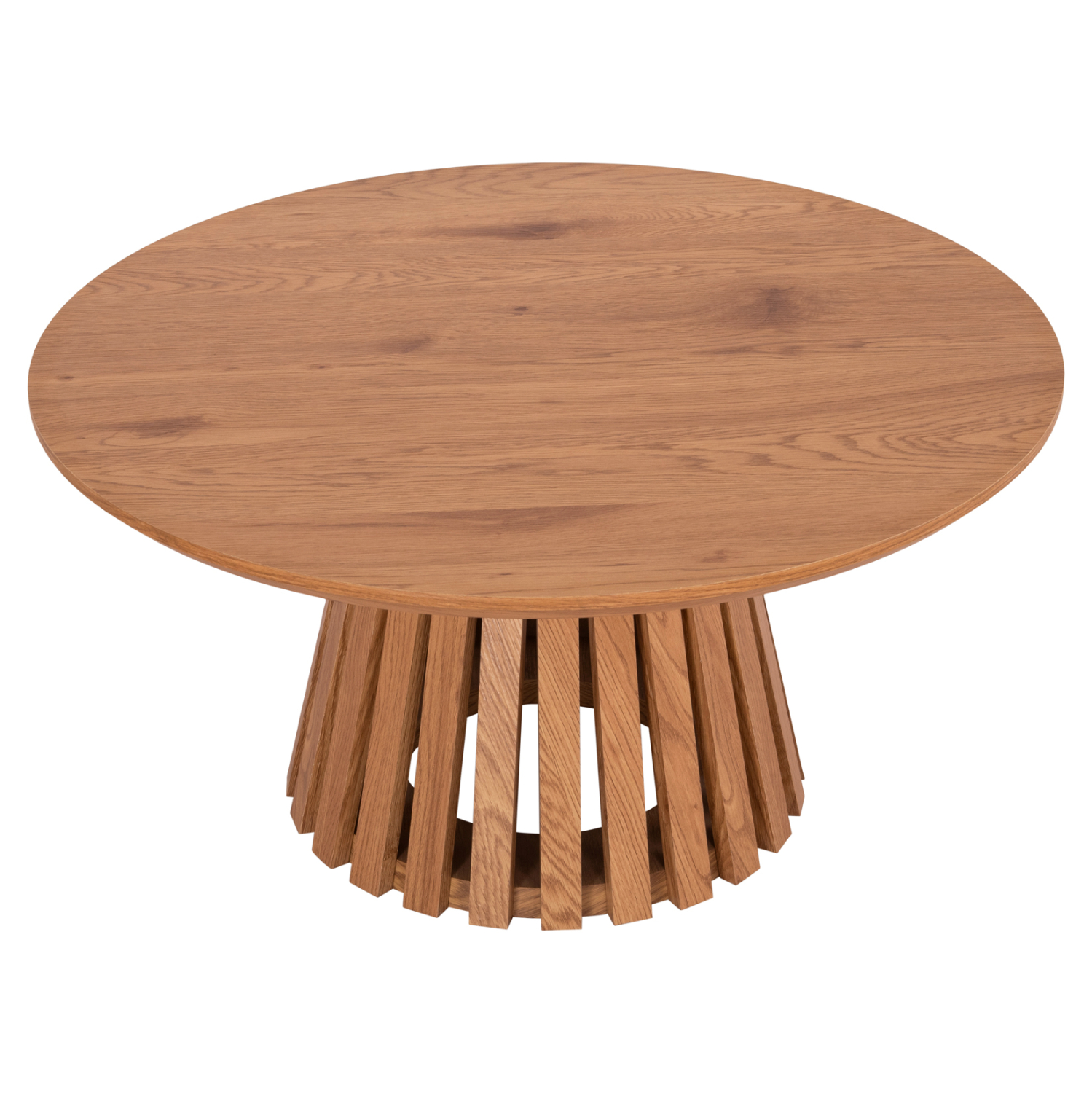 Το τραπέζι σαλονιού TALBERT είναι στρογγυλό και χαμηλό σχετικά τραπέζι σε ΑΝΟΙΧΤΟ χρώμα ΦΥΣΙΚΟΥ ξύλου. Ολόκληρο το τραπέζι είναι κατασκευασμένο από MDF και ξεχωρίζει ιδιαίτερα χάρη στην όμορφη κωνική βάση του.