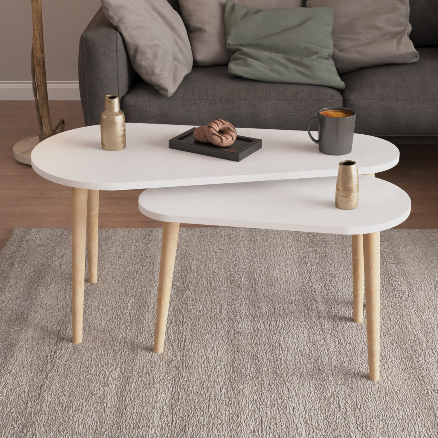 Το καινούργιο σετ 2τμχ οβάλ τραπεζιών για το σαλόνι APRILIA θα ικανοποιήσει και θα εξυπηρετήσει κάθε σας ανάγκη στο χώρο του σαλονιού. Πρόκειται για 2 τρίποδα τραπέζια με επιφάνειες από μελαμίνη 18mm σε ΛΕΥΚΟ χρώμα και τα δύο, ενώ τα πόδια είναι ξύλινα σε ΦΥΣΙΚΟ χρώμα ξύλου.
