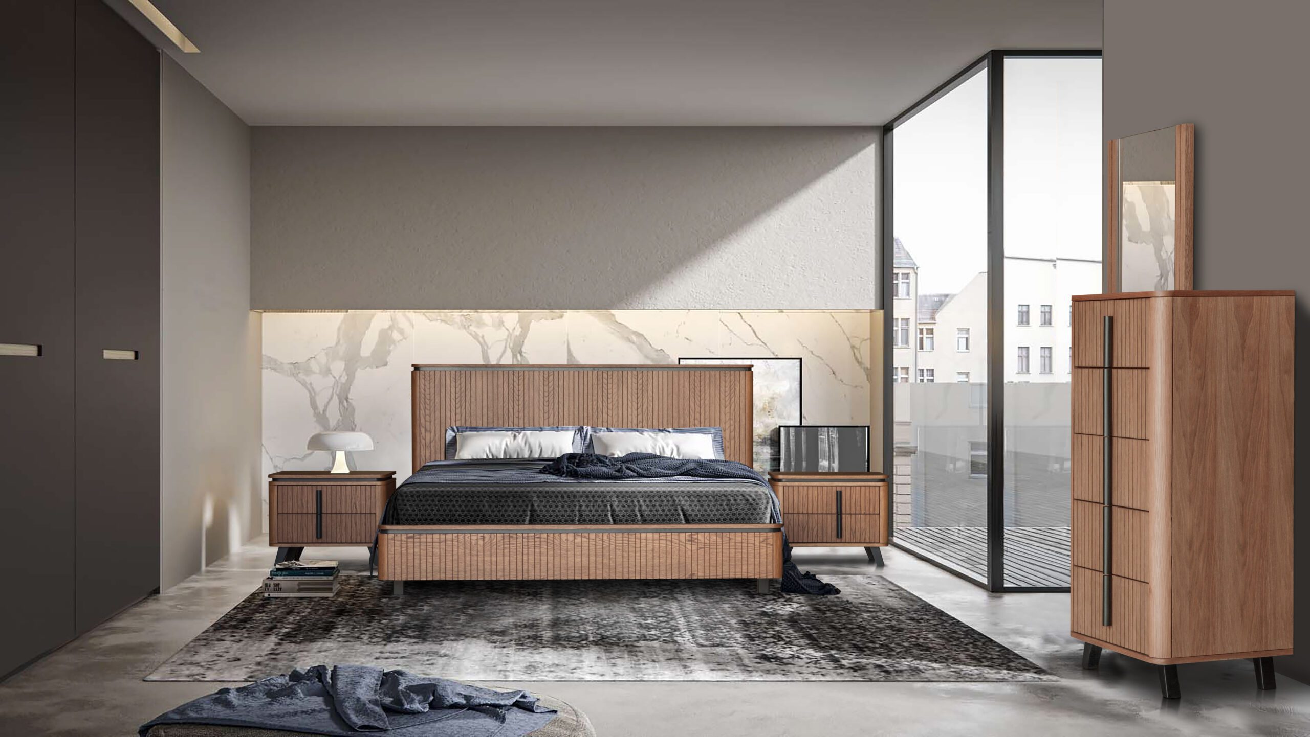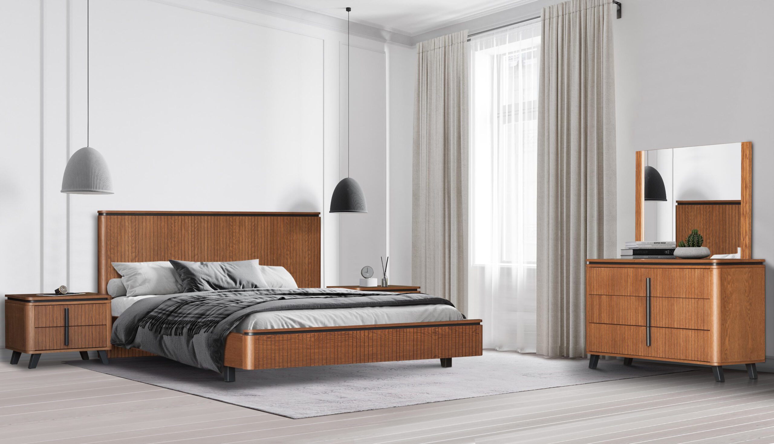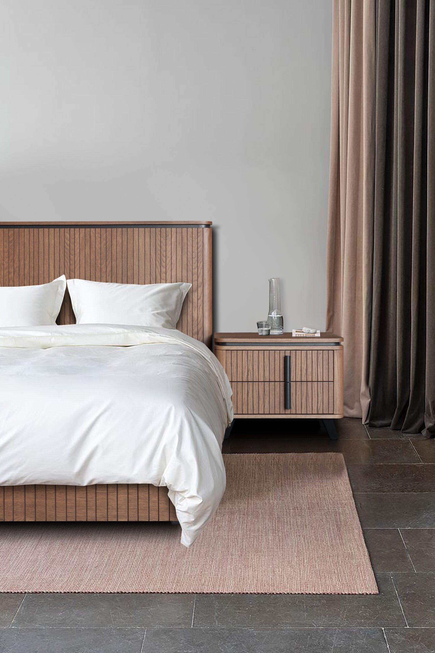 Κρεβατοκάμαρα από μασίφ ξύλο δρυς με δυνατότητα αλλαγής διαστάσεων σε κρεβάτι, κομοδίνα και συρταριέρα. Επιλέγετε το χρώμα ξύλου και το ύφασμα που σας ταιριάζει, για να δημιουργήσετε ένα σετ απόλυτα προσαρμοσμένο στις ανάγκες σας.