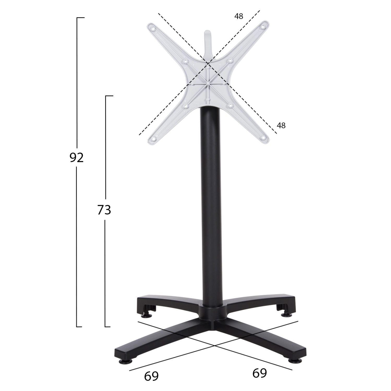 ΒΑΣΗ ΑΛΟΥΜΙΝΙΟΥ ΠΤΥΣΣΟΜΕΝΗ HM459.01 ΜΑΥΡΟ ΜΑΤ 69Χ69Χ73Υεκ. ΜΕ ΣΤΑΥΡΟ 48Χ48εκ.