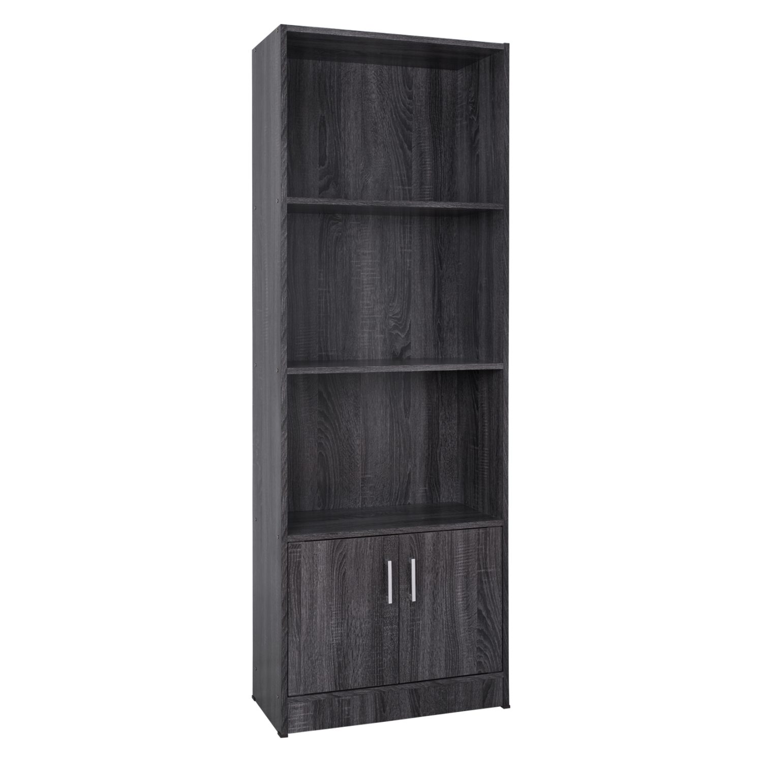 Βιβλιοθήκη γραφείου από μελαμίνη σε ανθρακί απόχρωση, με δύο πόρτες στο κάτω μέρος.