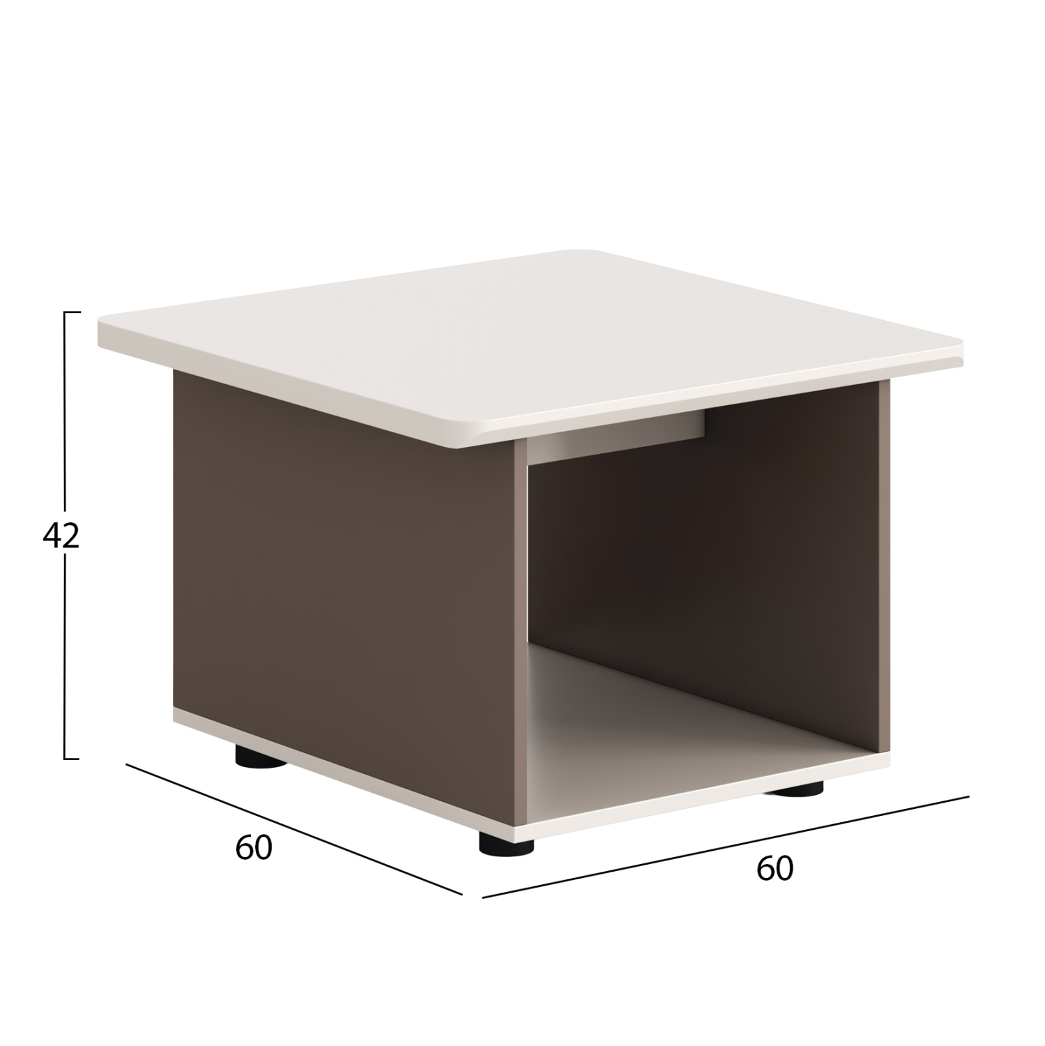 • Κομψό τετράγωνο βοηθητικό τραπέζι γραφείου με κλασικό σχεδιασμό με έναν ανοιχτό χώρο αποθήκευσης.