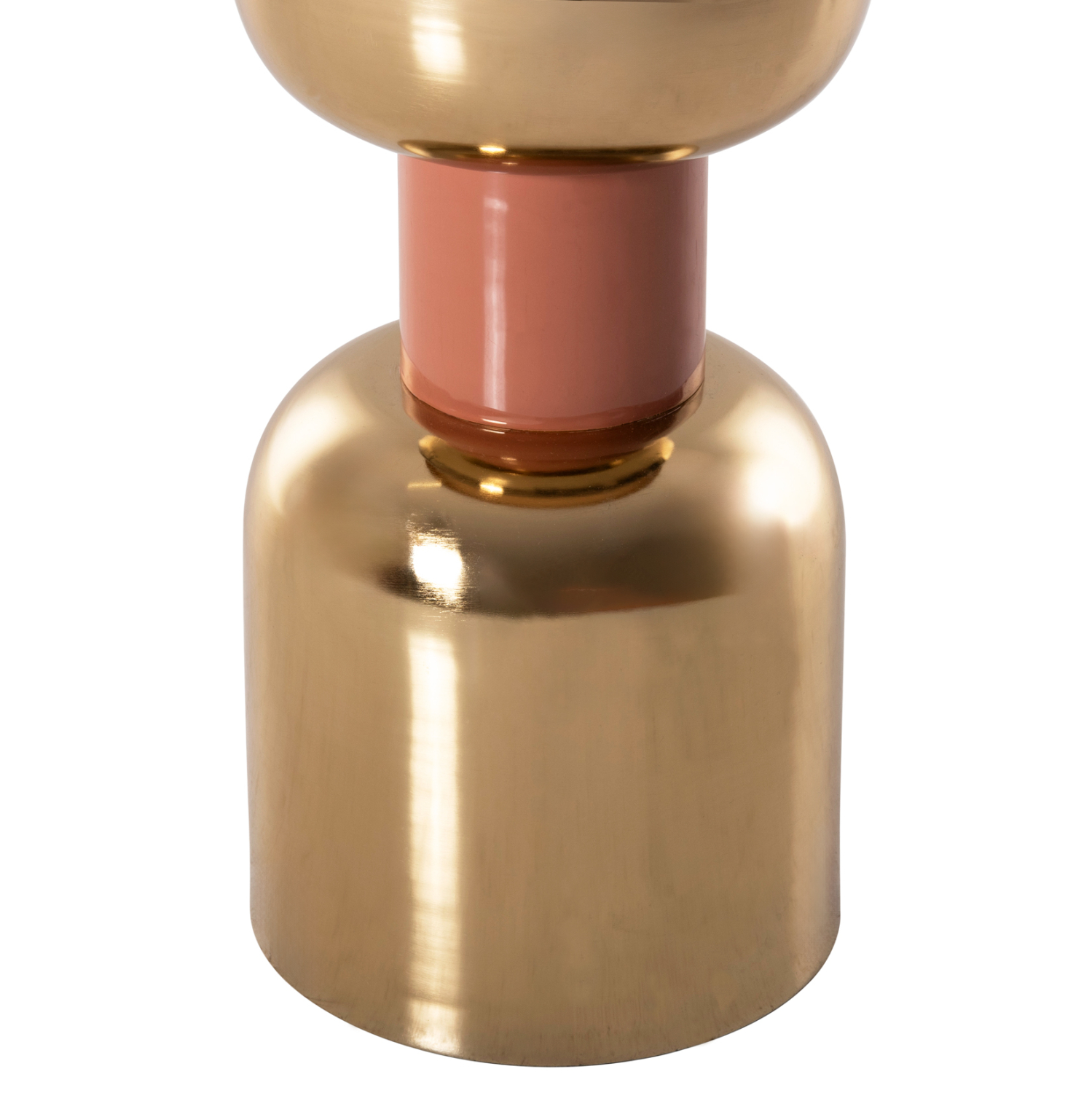 Το βοηθητικό τραπεζάκι SURAT για το σαλόνι είναι μια από τις νέες προσθήκες στην γκάμα μας. Πρόκειται για ένα μεταλλικό τραπεζάκι στρογγυλό με περίτεχνη κυλινδρική βάση και λαιμό. Το τραπέζι είναι σε όμορφη διχρωμία ΣΟΜΟΝ-ΧΡΥΣΟΥ που δίνει μια αίσθηση καθαρότητας στον χώρο. Ιδανικό τόσο για το σπίτι, όσο και για επαγγελματικούς χώρους.