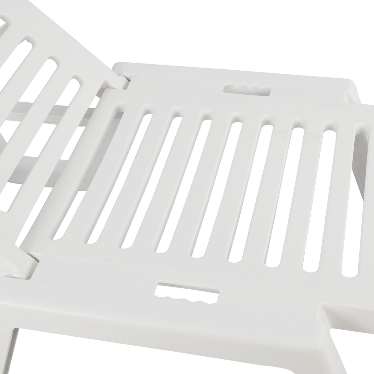 Επαγγελματική ανακλινόμενη ξαπλώστρα παραλίας, Relax, κατασκευασμένη από ανθεκτικό πλαστικό σε λευκό χρώμα.