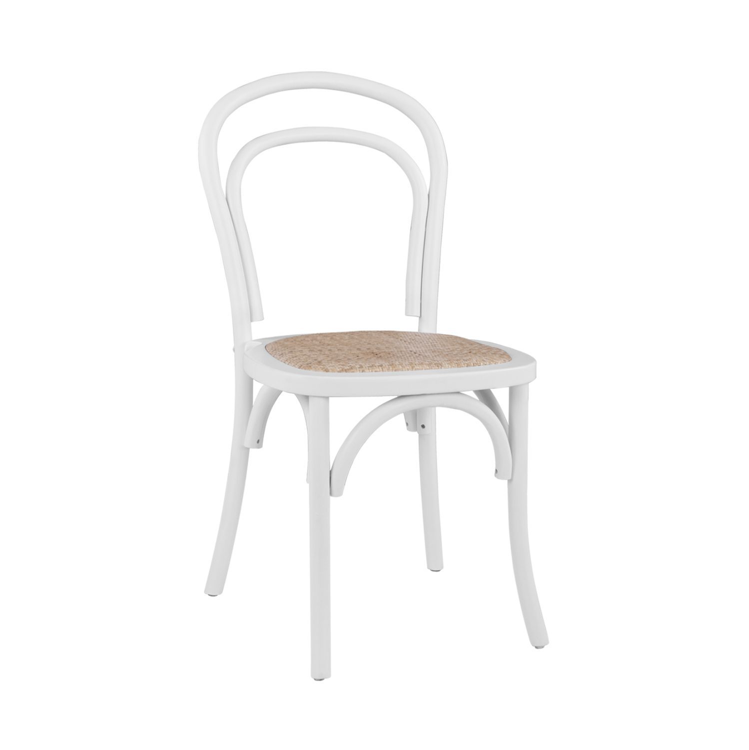 Η καρέκλα ALIYAH είναι κατασκευασμένη από υψηλής αντοχής ξύλο οξιάς σε λευκή ματ απόχρωση με κάθισμα από ψάθα.