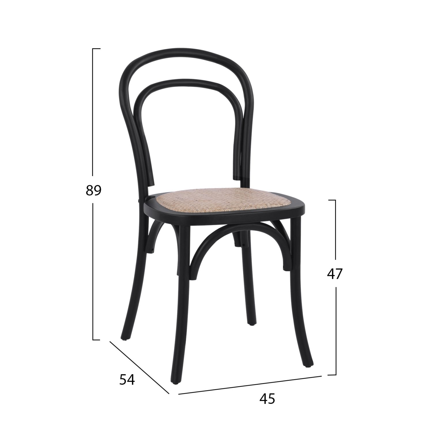 Η καρέκλα ALIYAH είναι κατασκευασμένη από υψηλής αντοχής ξύλο οξιάς σε μαύρη ματ απόχρωση με κάθισμα από ψάθα.
