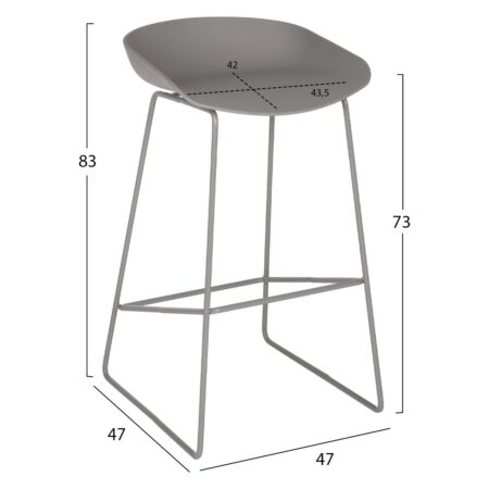 ΣΚΑΜΠΟ ΜΕΤΑΛΛΙΚΟ NAILA HM8450.10 ΜΕ ΚΑΘΙΣΜΑ PP ΓΚΡΙ 47x47x83 εκ.
