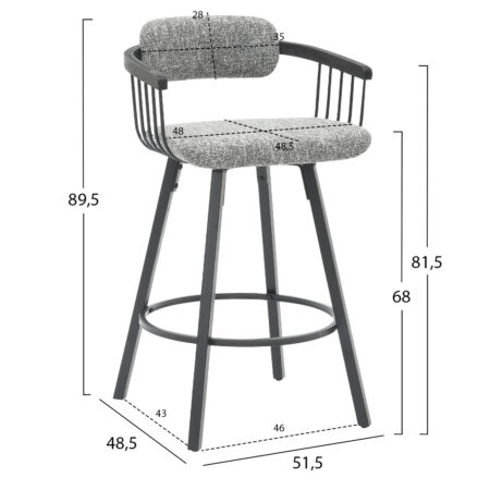 ΣΚΑΜΠΟ ΜΠΑΡ ΠΕΡΙΣΤΡΕΦΟΜΕΝΟ LANG HM9990.02 ΜΑΥΡΟ ΜΕΤΑΛΛΟ-ΓΚΡΙ ΥΦΑΣΜΑ 51,5x48,5x89,5Υεκ